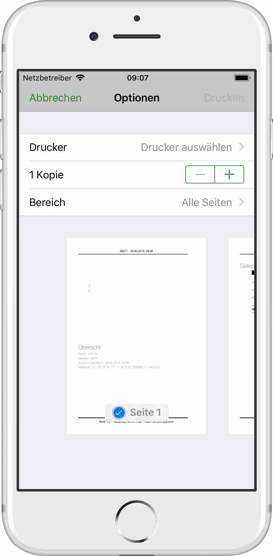 Die Funktion »Drucken« einer Aufzeichnung befindet sich im Abschnitt »Aktionen« in der Detailansicht. Mehr Informationen zur Detailansicht findest du unter Details einer Aufzeichnung.